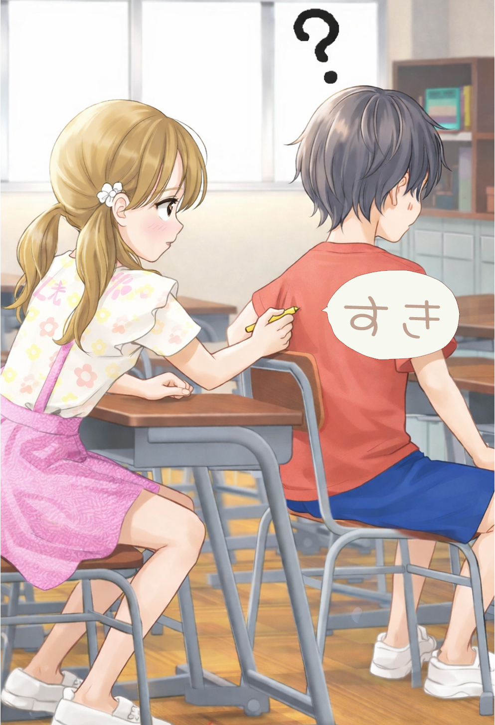 小学校の時、背中に書いた文字を当てるクイズが流行って、私たちもやったことがある。